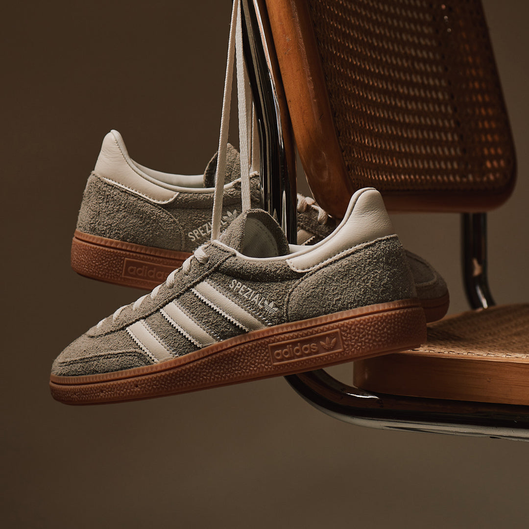 Først brugte vi dem på indendørsbanerne til håndbold eller fodbold. Så tog vi dem på i skolegården. Nu er de dine næste fashion sneakers, der kan passe ind i enhver garderobe! Den ikoniske Adidas Handball Spezial er tilbage i en frisk ny farvekombination: Prøv dem i en flot Silver Pebble/Off White/Gum. Modellen har ikke set skarpere ud siden sin første lancering i 1979.