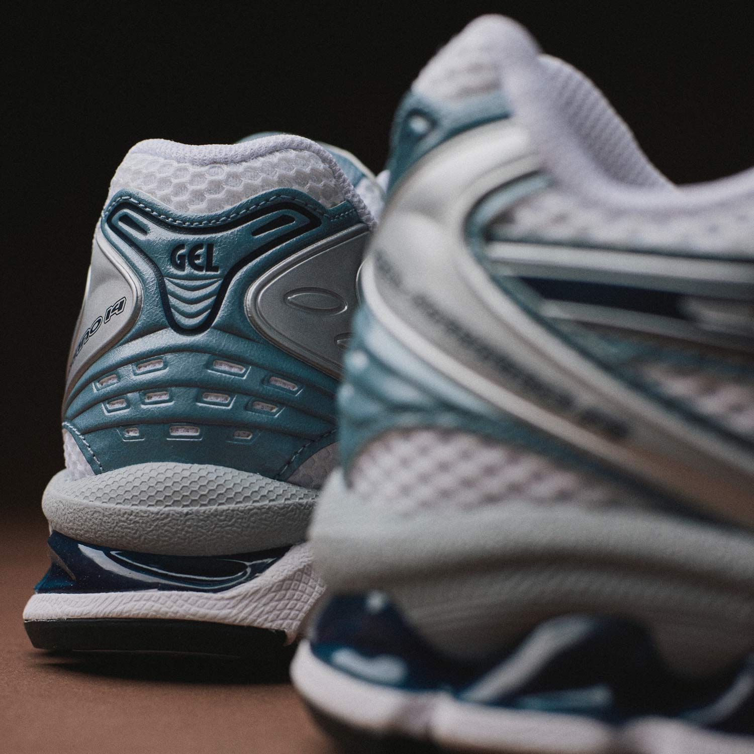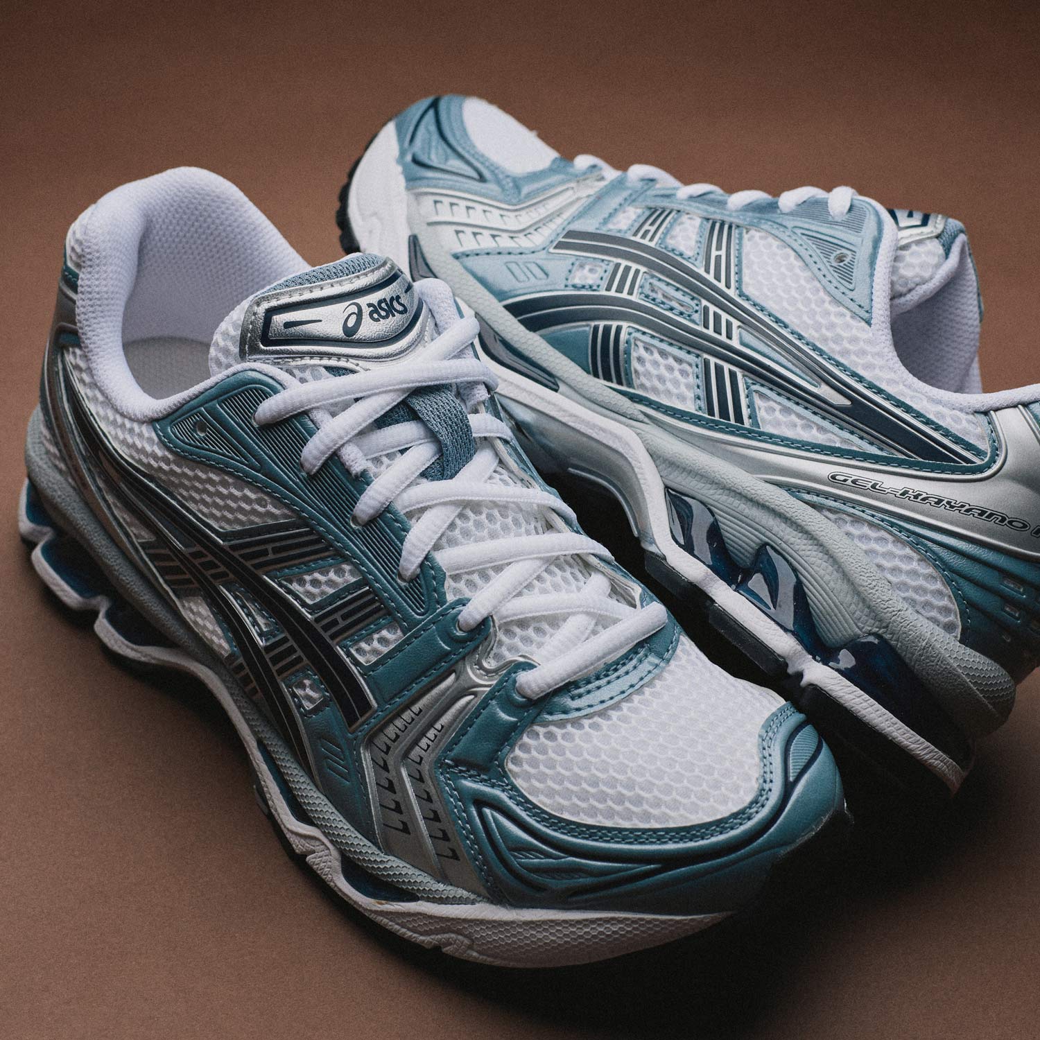 Asics Gel Kayano 14 er tilbage i en elegant White/Fjord Grey colorway! Prøv den i dag!