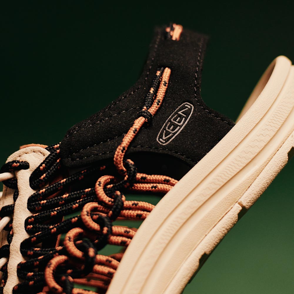 Keen UNEEK her i samarbejde med END. Grundlagt i 2005 af Christian Ashworth og John Parker blev END. skabt gennem en fælles passion for mode, design, kunst og musik. Over 10 år efter Rory Fuerst Jr. satte sig for at skabe den første open-air sneaker, har KEEN teamet op med END. for at bringe dig UNEEK ‘Camping’ - en fejring af at undslippe byen og fordybe sig i naturen. Skabt med genbrugte elastiske snore, der tillader fri bevægelighed, er det farvepaletten, vi ikke kan få nok af. Mørkere toner afspejler skovens æstetik, mens de orange nuancer er inspireret af solopgange, solnedgange og hyggelige lejrbål. Den kommer her i en flot Black/Hazel farvekombination, med sit unikke to-snor system og en justerbar pasform der sikrer komfort for enhver fod. Du kan sikre dig et par ved at skrive dig op her!